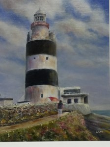 Our friend and colleague, Máire Magner, is exhibiting her art work in the Friary Hall during the Arts Festival as part of the Bluebell Group of Artists . She would be delighted to see you there so if you are on the exhibition trail please do give her a call. The work featured is a watercolour of the ruins of St. Kieran’s Church in Kells and the feature painting is an oil of the Hook Lighthouse. We hope you have a very successful exhibition Máire.
